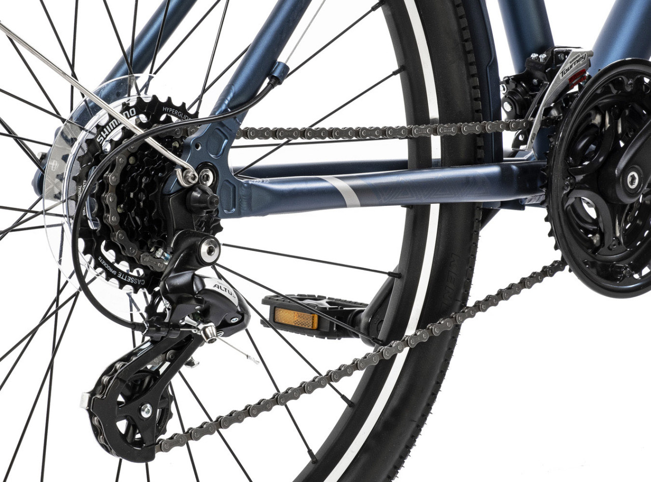 Дорожный велосипед, который подойдёт для увлекательных поездок по городским улицам, дворам, паркам, садам и скверам. Переключатель Shimano Altus RD-M310 помогает подобрать подходящую передачу для хорошей или не очень хорошей дороги. Модель обладает прочными покрышками Kenda K1118 26x1.95. Расход энергии контролируется благодаря продуманной системе PROWHEEL Alloy. Для быстрых остановок используются отлично себя проявляющие ободные механические тормоза V-brake. Технологичная рама байка изготовлена из алюминиевого сплава. Модель оснащена стандартным уровнем оборудования.