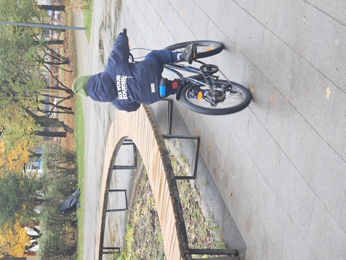 Купил сыну велосипед,что бы учился ездить на двухколёсном велосипеде,получилось конечно не сразу но получилось. После падений с сыном и великом все в порядке.