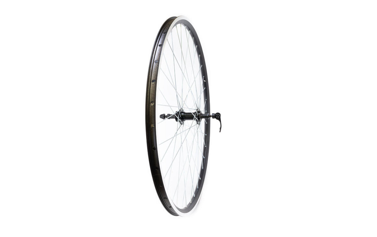Универсальное заднее колесо Trix в сборе, готовое к установке. Имеет стандартный размер 26". Лучше всего подойдет для MTB, треккинговых и городских велосипедов. Рассчитано для установки с трещоткой резьбового типа и в рамы с шириной меду перьями 135 мм. (O.l.d). Втулка оснащена алюминиевым корпусом с 36 отверстиями, насыпными подшипниками. Ось выполнена из стали, фиксируется эксцентриком. Спицы стандартные стальные 2 мм 14G. Обод Trix, алюминиевый с двойной стенкой, не пистонированный, под автомобильный ниппель камеры. Параметры обода 24,1/31,6х24,2 мм. Оптимальным сочетанием будут покрышки с шириной от 1,95, поддерживает колесо оптимальную нагрузку до 100 кг. Выпускаются колеса полностью в черном цвете. Стоит заметить, что колесо полностью готово к установке, оно собрано и протянуто. В сборку не входят: ободная лента, камера, покрышка.